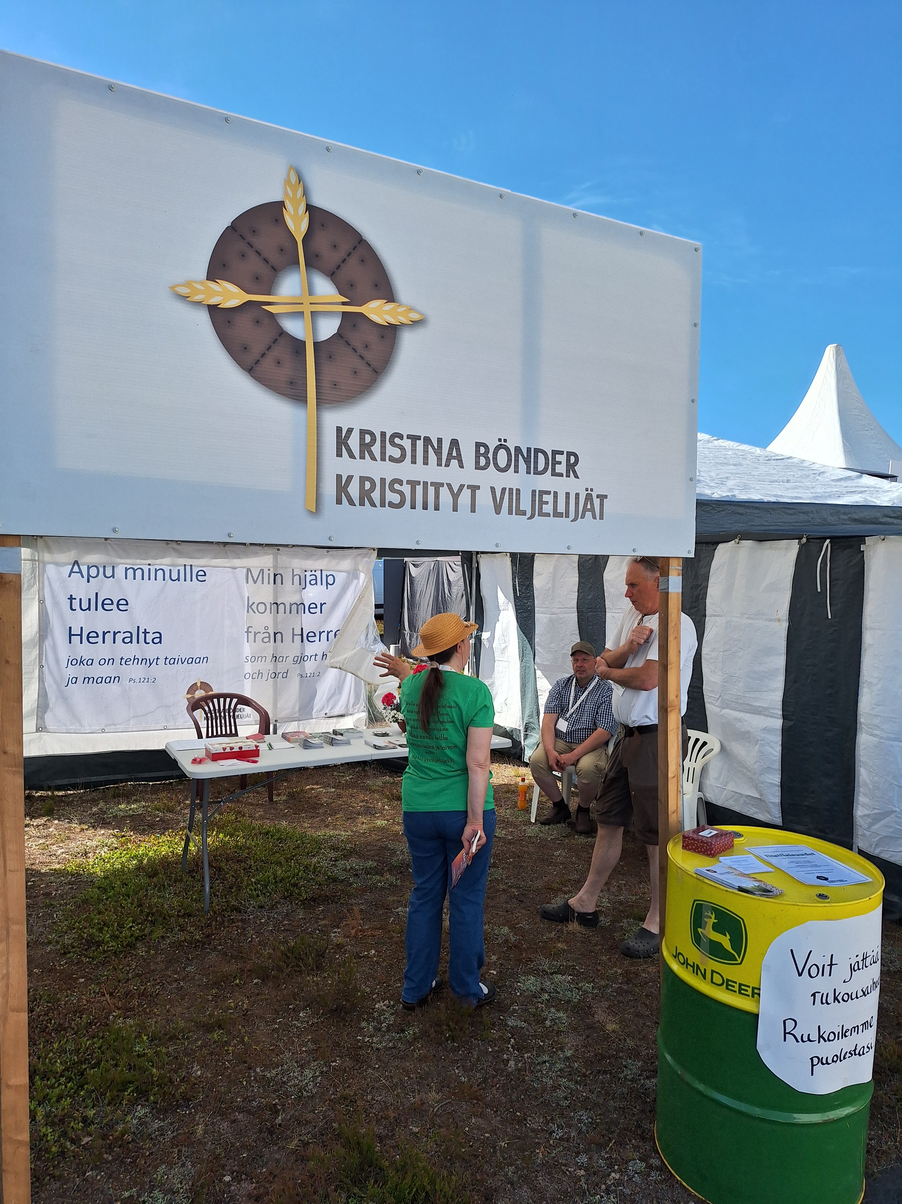Kristna bönder var med på Farmari-utställningen 14-17 juni med egen avdelning. Vi träffade bönder, delade ut broschyrer och berättade om vår förening och gemenskap. Tack till alla som var med! Utställningen, som gynnades av det soliga och varma vädret, besöktes av totalt 94 000 personer.