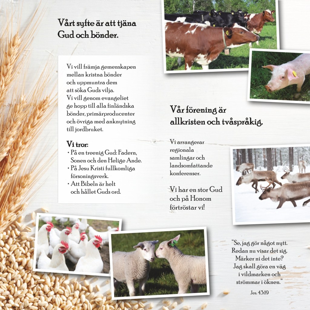 Det må se mörkt ut, vi kanske ställer oss frågan: kommer en ny generation att ta över eller ska bondekåren minska ännu mera? Är Gud död? Nej! Är han allmaktens Gud? Ja! Han är den som kan förvandla människors hjärtan. Han är den som kallar människan till hennes uppdrag. Han är den som kommer att kalla unga människor till att bli bönder.